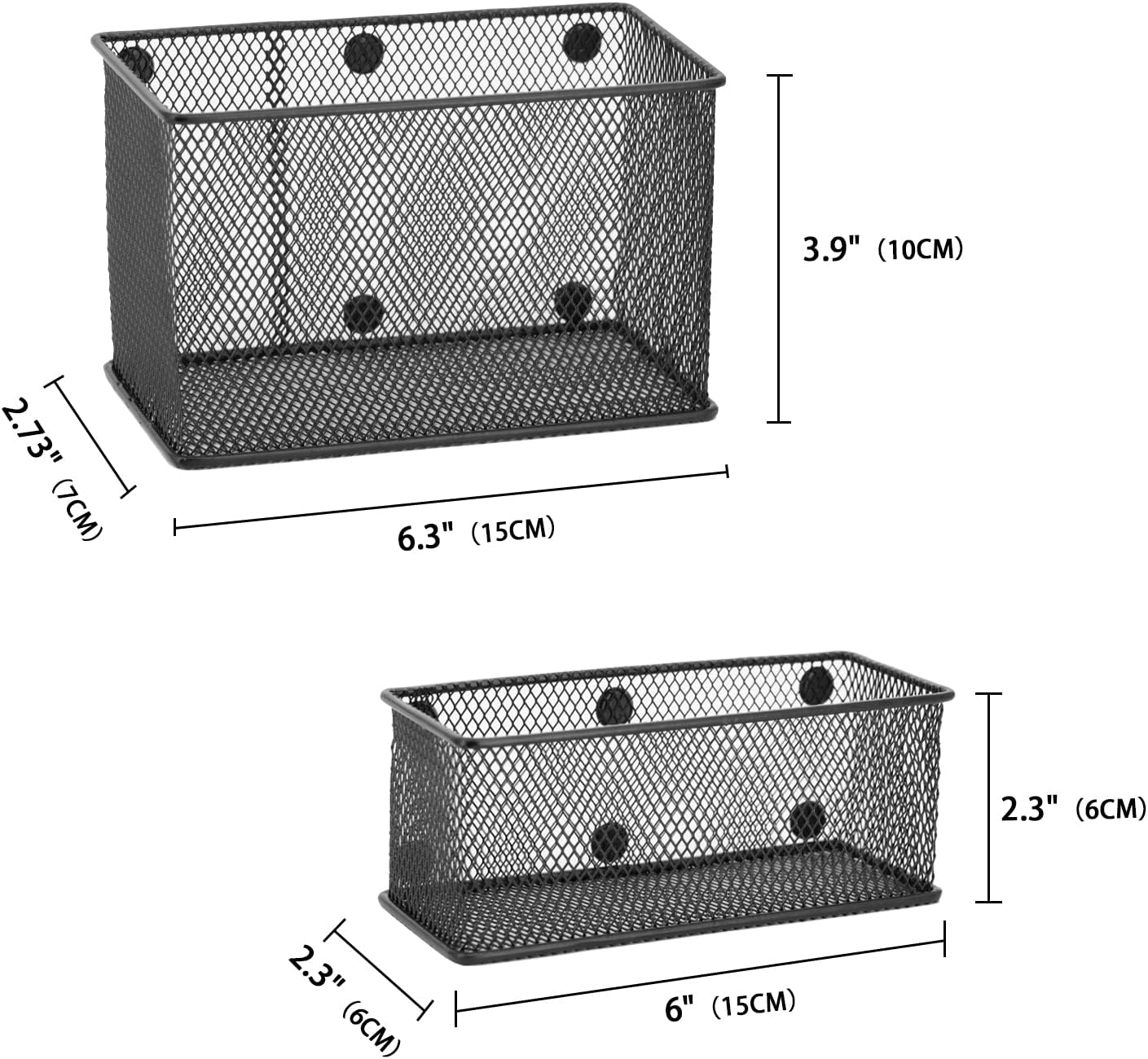 - [Magnetic Locker Shelf Organizer] Magnetic baskets by Neudeco brings organization with 3 pack pencil holder that sets office necessities and more in order. It includes two little sizes: 6x2.35x2.35 and one larger size: 6.3x2.75x3.94 that enables you to store little goods like stationery, cosmetics, spices, keys, small tools, cellphones, sunglasses, remote controls, cards, and other small household objects.
