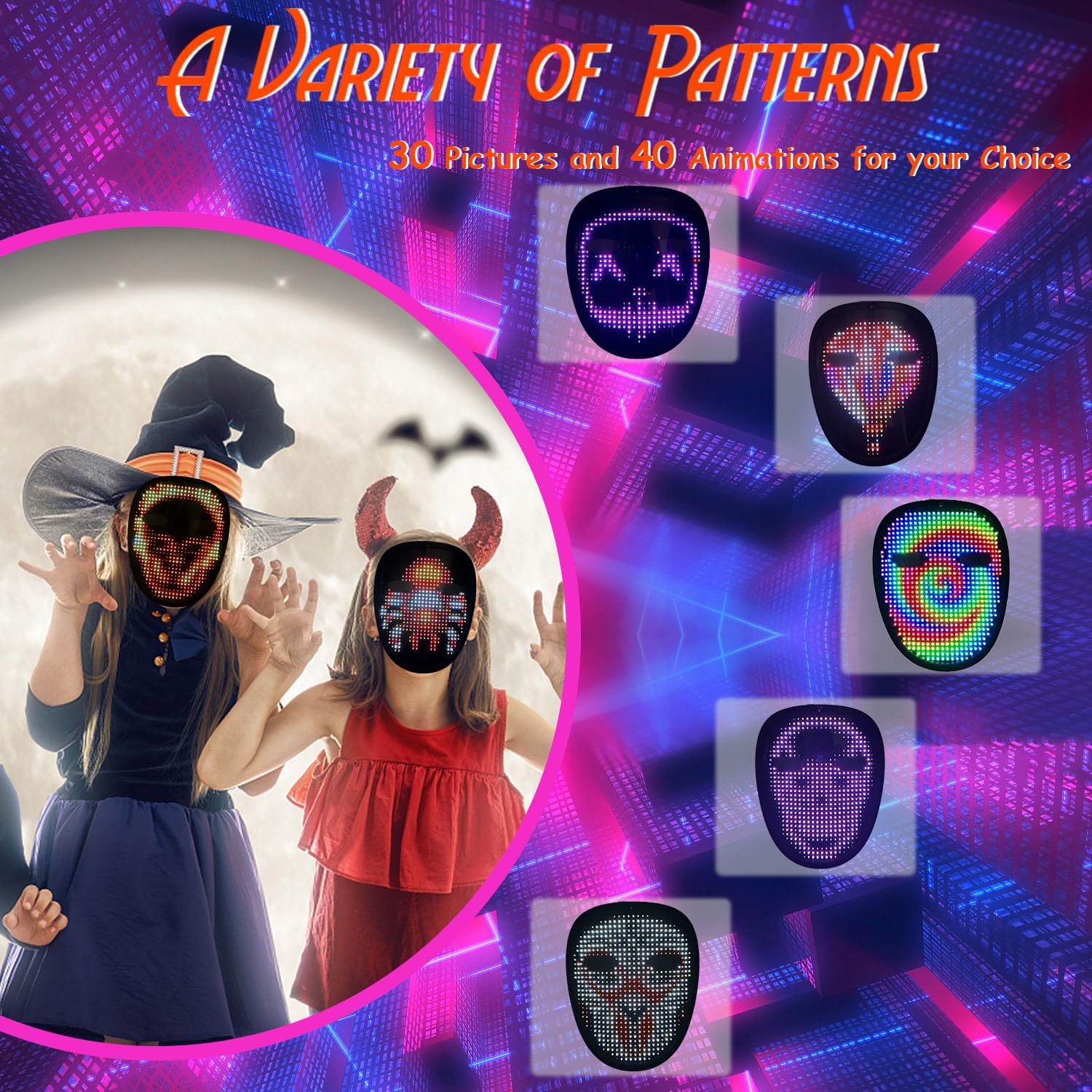 - Led Mask Has 40 Dynamic Display Modes And 30 Static Display Images, led full face mask Is Most Amazing Costumes&Cosplay Apparel mask,Attract Everyone's Attention.
