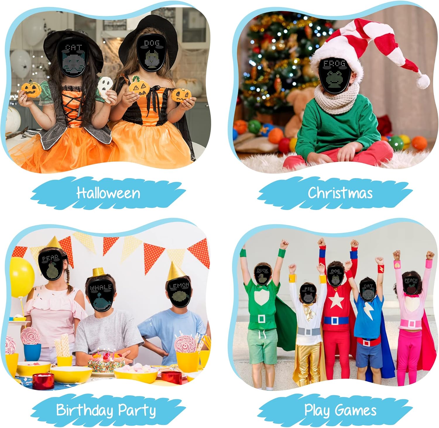 - Depointer Life Kids Led Masks Adopts Led Full Mask Design With An Adjustable Strap,Which Is Very Suitable For Cosplay,Masquerade,Birthday Party,Halloween,Christmas,Carnival,Electronic Music Festival And Other Occasions.
